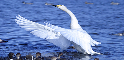 ・日本遺産に登録された里沼、自然豊かな水辺に冬の使者白鳥が舞い降ります。