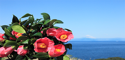 ・日本最大級の椿園を見学。華やかな色彩と香りを楽しんで。
